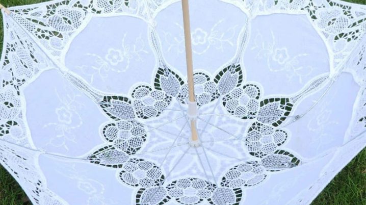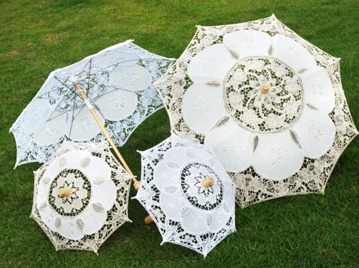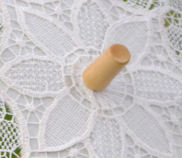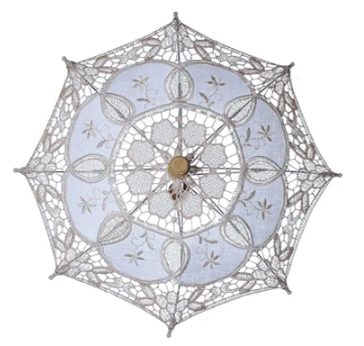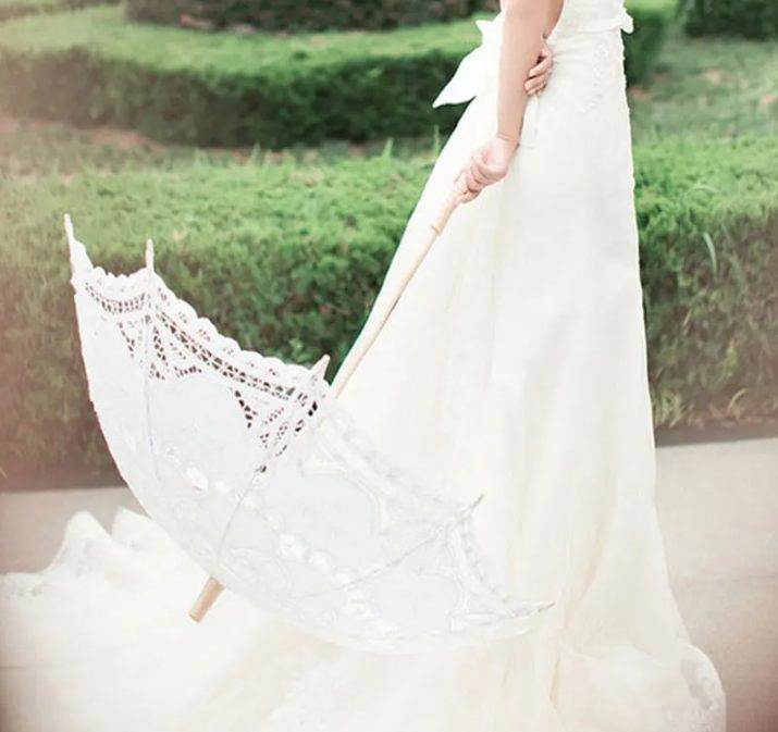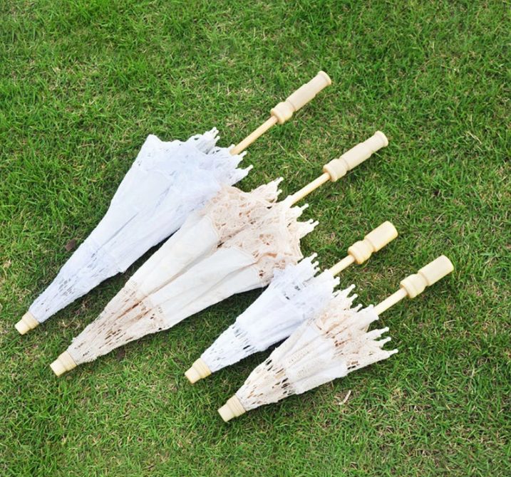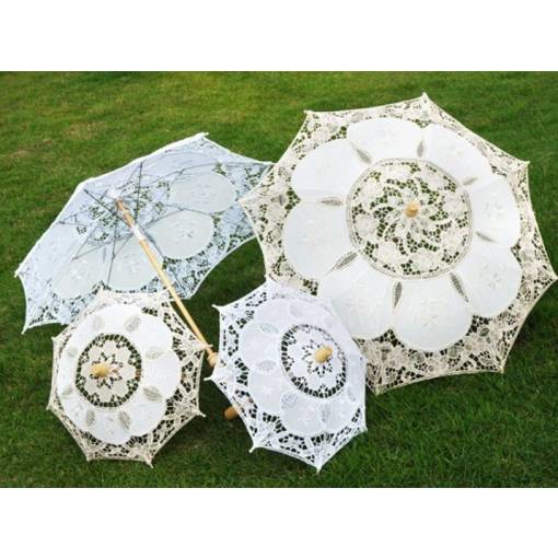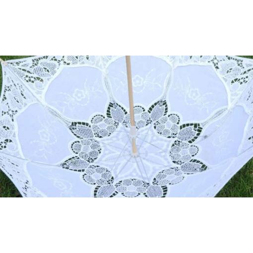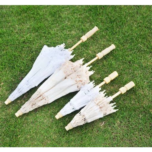 Svadobný dáždnik s bambusovou konštrukciou a krajkovým bavlneným plášťom je elegantným doplnkom na svadobné fotenie alebo romantickú svadobnú výzdobu.