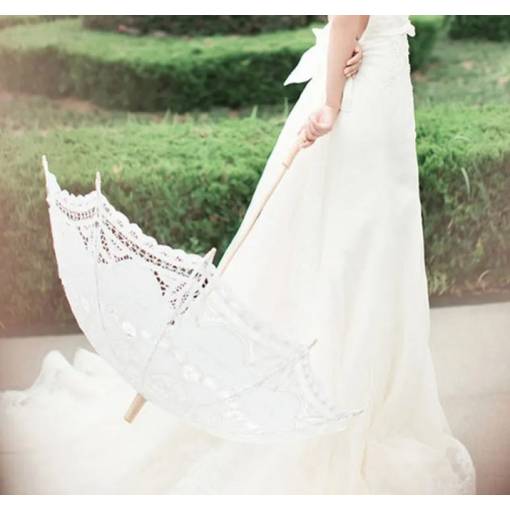 Tento dáždnik nie je určený na ochranu pred dažďom ani slnkom, ale slúži ako štýlový a dekoratívny prvok, ktorý nádherne doplní nevestin outfit alebo vytvorí pôsobivú scénu pri fotení.