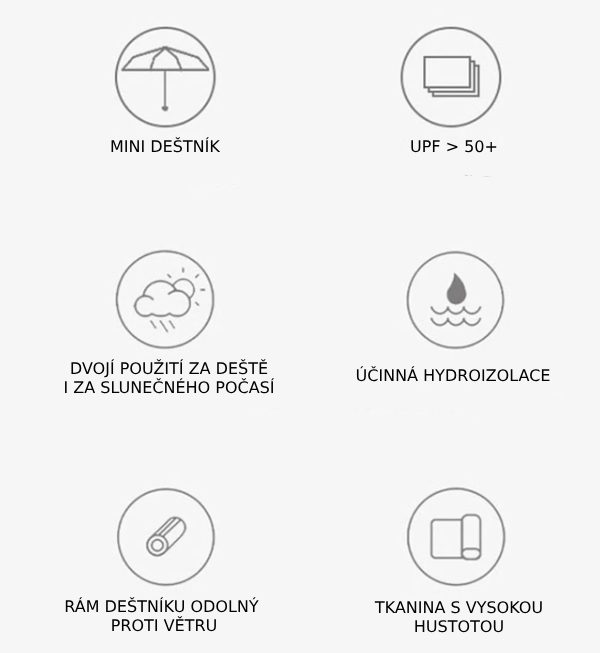 Dáždnik poskytuje vynikajúcu ochranu proti slnečnému žiareniu vďaka UV ochrane s faktorom UPF>50+, čo znamená, že blokuje viac ako 98% škodlivého UV žiarenia.
