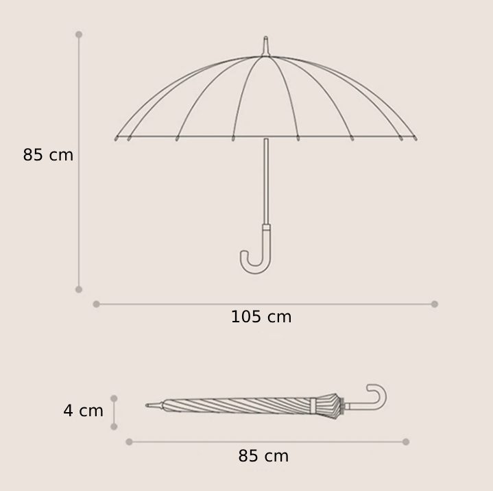 • Dĺžka zloženého dáždnika: 85 cm (pozri fotografie produktu)