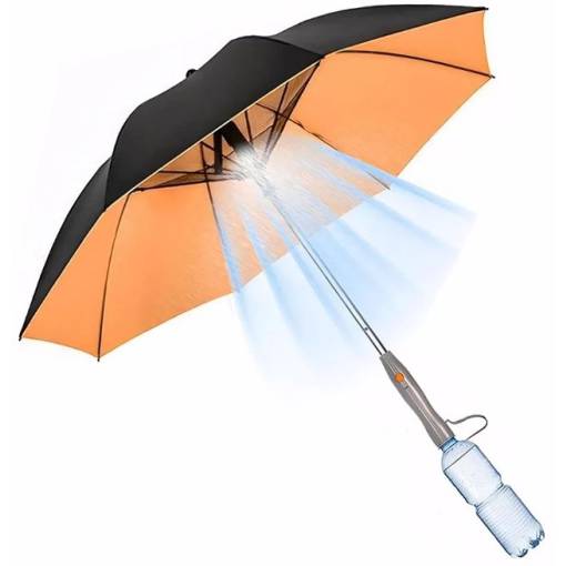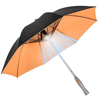 Poloautomatický dáždnik s ventilátorom a vodnou hmlou - Čierno oranžový