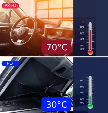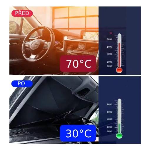 Automobilová slnečná clona v tvare dáždnika je praktickým a spoľahlivým riešením na ochranu Vášho vozidla pred slnečným žiarením.