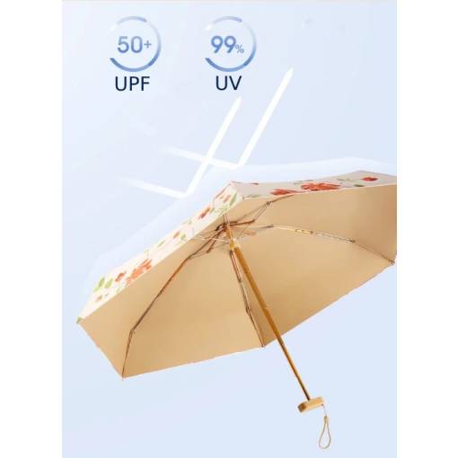 Mini skladací dámsky dáždnik s ochranou proti UV žiareniu (UPF50+) je praktický a všestranný doplnok do každého počasia.