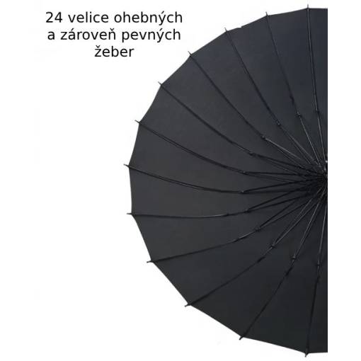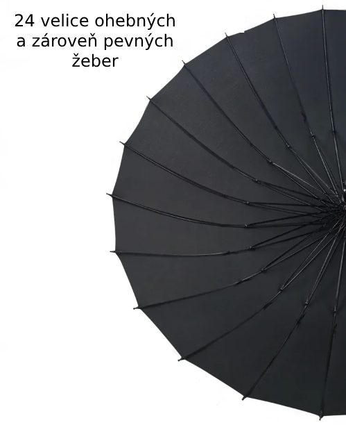 Holový dáždnik je ideálnou voľbou pre náročné poveternostné podmienky, vďaka 24 rebrám z nerezovej ocele je mimoriadne pevný a odolný aj proti silnému vetru.