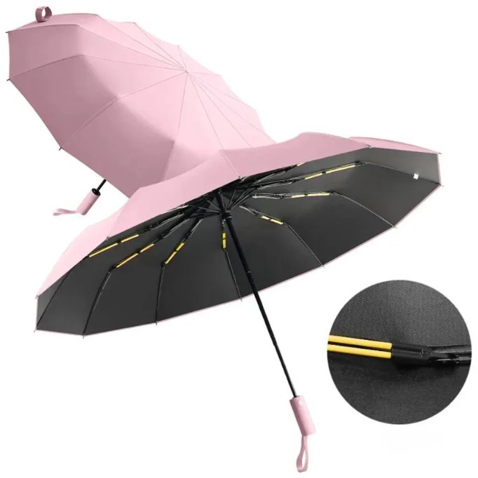 Unisex dáždnik s reflexnými rebrami a UV ochranou - Ružový