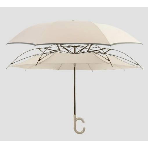 Jeho dvojvrstvový plášť poskytuje nielen ochranu proti dažďu, ale zároveň filtruje škodlivé UV žiarenie. Vďaka tomu ho možno použiť aj ako slnečník, čo je ideálne na pláži alebo na záhrade počas slnečných dní.