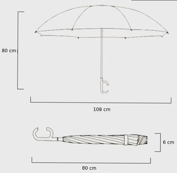 • Dĺžka rozloženého dáždnika: cca 80 cm (pozri fotografie produktu)