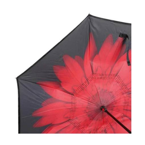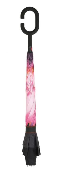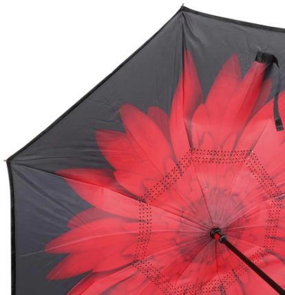 Obrátený dizajn zavírania znamená, že sa dáždnik skladá opačne než bežné modely – vonkajšia mokrá strana sa skladá dovnútra, čo zabraňuje kvapkaniu vody a uľahčuje manipuláciu v uzavretých priestoroch.