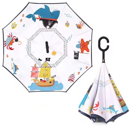 Detský dáždnik sa vyznačuje inovatívnym obráteným dizajnom otvárania, čo znamená, že sa rozkladá smerom von, čo minimalizuje odkvapkávanie vody, či už doma alebo v aute.