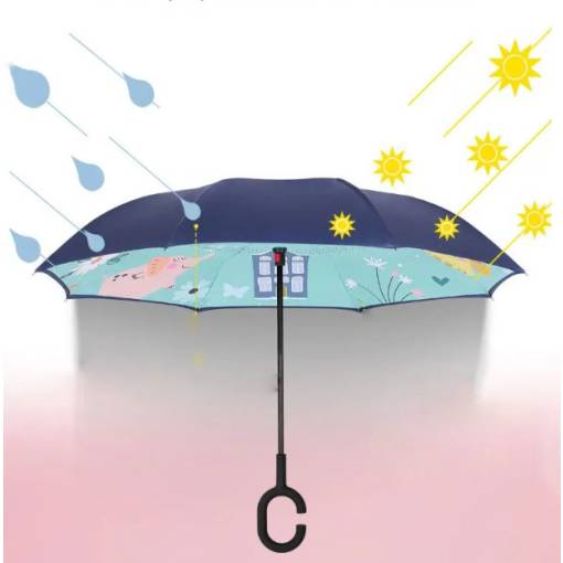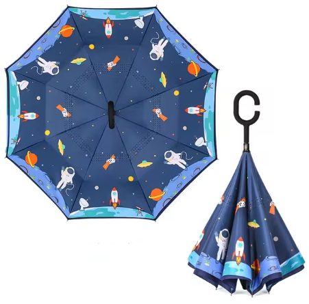 Detský dáždnik sa vyznačuje inovatívnym obráteným dizajnom otvárania, čo znamená, že sa rozkladá smerom von, čo minimalizuje odkvapkávanie vody, či už doma alebo v aute.