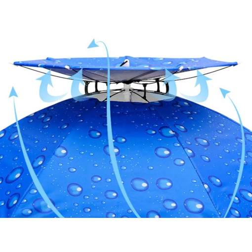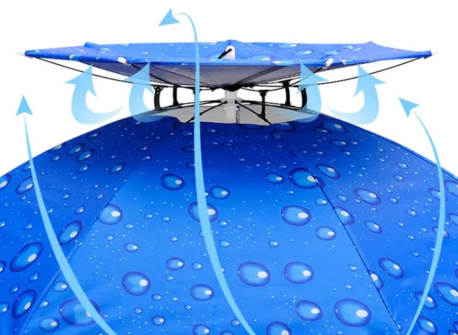 Dáždnik má dvojvrstvový vršok, ktorý zaisťuje dobrú ventiláciu. Táto konštrukcia umožňuje efektívny odvod tepla a vlhkosti, čo oceníte najmä pri dlhších pobytoch na slnku. Vrchnú časť je možné ľahko otvoriť smerom nahor pomocou elastickej gumy, čím sa zlepší cirkulácia vzduchu a zvýši komfort.