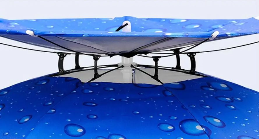 Vodeodolný dáždnik s upevnením na hlavu je perfektným spoločníkom nielen na ochranu proti dažďu, ale aj proti slnku. Je vyrobený z oxfordskej tkaniny, ktorá je potiahnutá polyesterom, čo mu dodáva vynikajúcu UV ochranu. Vďaka tomu vás nielen udrží v suchu, ale aj ochráni pred škodlivými slnečnými lúčmi.