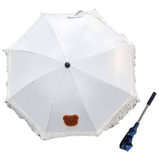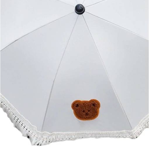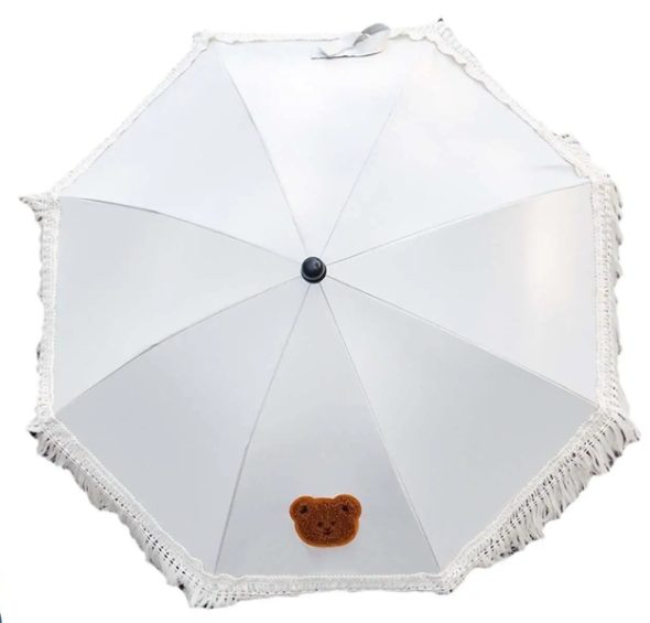 Detský nastaviteľný dáždnik s klipom na kočík - Biely s medvedíkom