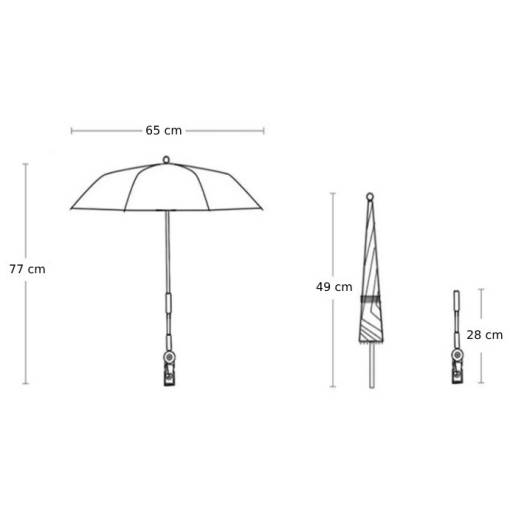 Vďaka praktickému klipu je možné dáždnik ľahko pripevniť na kočík alebo iné zariadenie, ako sú plážové ležadlá, a nastaviť ho podľa aktuálnych potrieb.