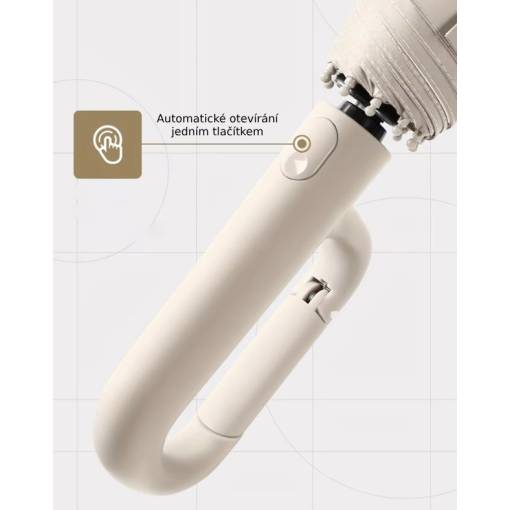 Rukoväť dáždnika je vyrobená z vysoko kvalitného ABS materiálu, čo je pevný a odolný plast. ABS (akrylonitrilbutadienstyrén) je široko používaný pre svoju odolnosť voči nárazom a oderu. To znamená, že rukoväť z tohto materiálu je veľmi pevná, trvanlivá a pohodlná na držanie.
