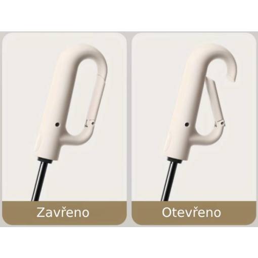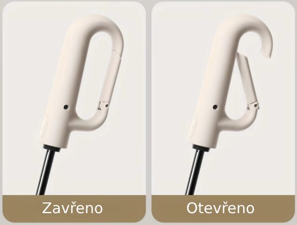 Rukoväť dáždnika je navyše vybavená klipom, ktorý je možné otvoriť a zavrieť. Tento klip umožňuje ľahké zavesenie dáždnika na batoh, opasok alebo akýkoľvek iný predmet, čo je veľmi praktické, pretože nemusíte dáždnik neustále držať v ruke alebo hľadať miesto, kam ho odložiť.