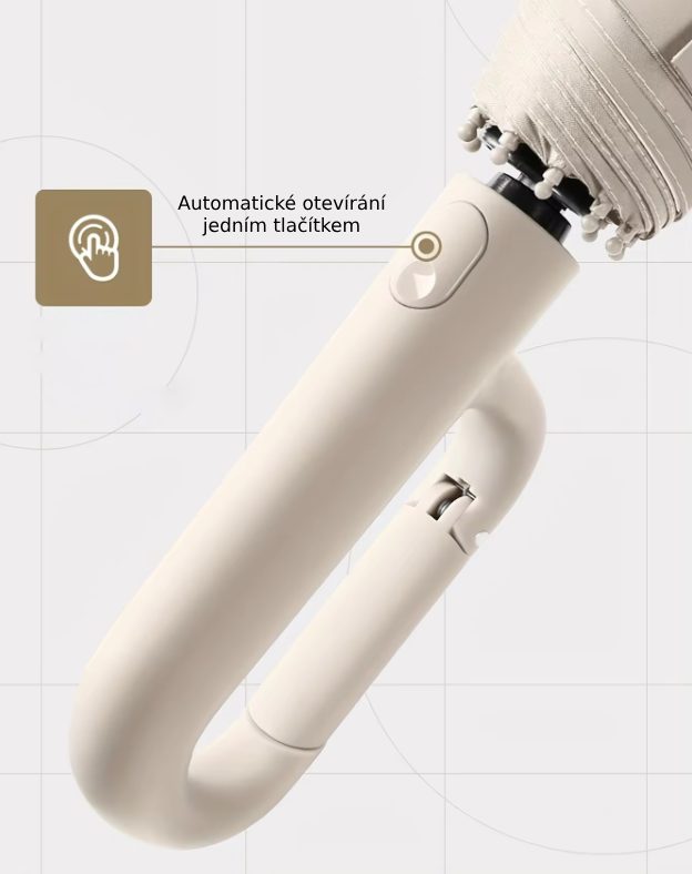 Dáždik je úplne automatický a je vybavený tlačidlom na rukoväti, ktoré zabezpečuje rýchle a pohodlné otvorenie aj zatvorenie jednou rukou. Tento mechanizmus je veľmi praktický, pretože šetrí čas a umožňuje jednoduchú manipuláciu s dáždikom za daždivých podmienok.